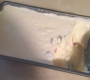 - Pour into loaf pan and freeze for at least 6 hours, or until the ice cream is firm.