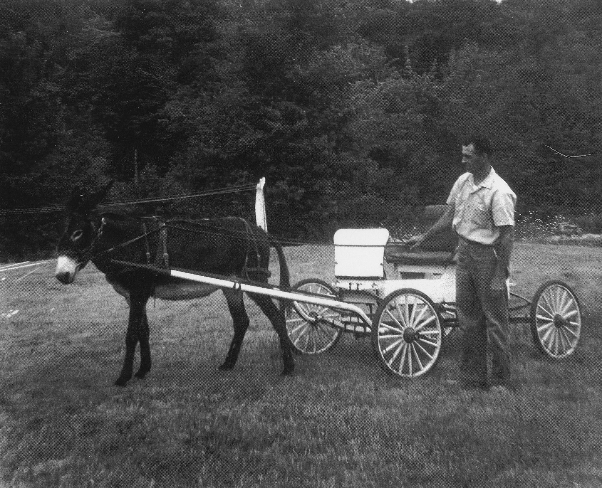 Wayne Cooper Sr. poses with his donkey, Jenny. According to his son, Wayne Cooper Jr., he loved to take his grandchildren for rides in the wagon. This photo was taken in the 1960s.