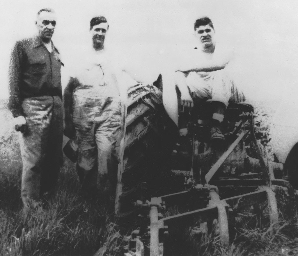 Albert (A.J.) Loudon, Nick Althouse and Homer Althouse pause for a quick photo during a 1953 test of this plow on a farm near Salem, Ohio. It must’ve been a good trial, because Nick Althouse bought the plow!