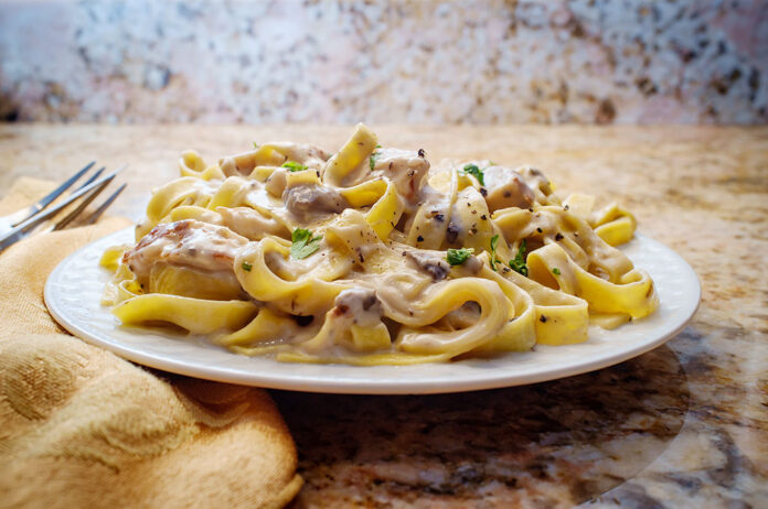 - While the sauce is thickening, cook the egg noodles in a separate pot based on the package instructions.