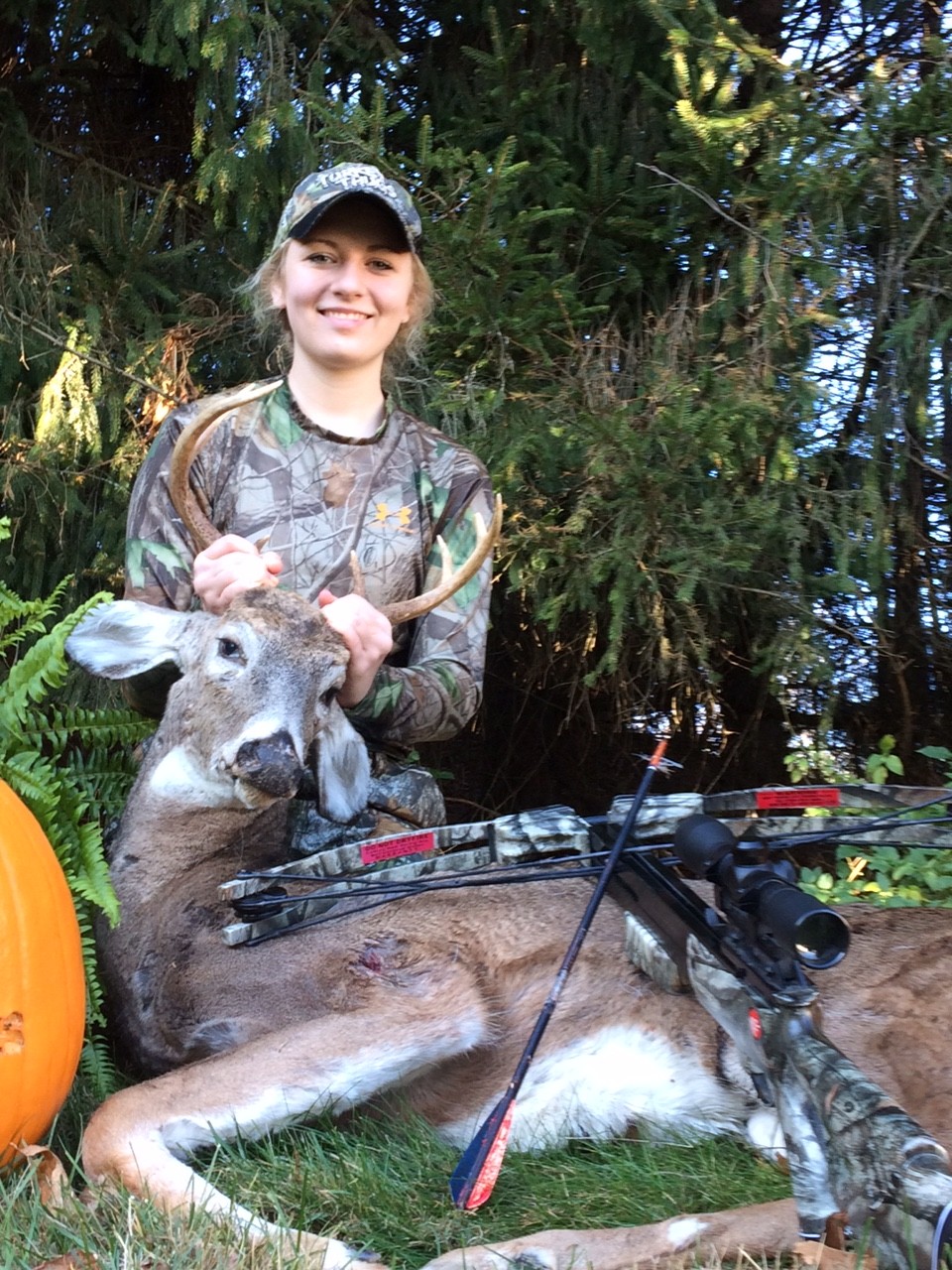 Alivia Miller displays her 8-point buck harvested on her Grandpa Snow’s farm in Holmes County, Ohio. The buck was taken with her crossbow in November 2015.