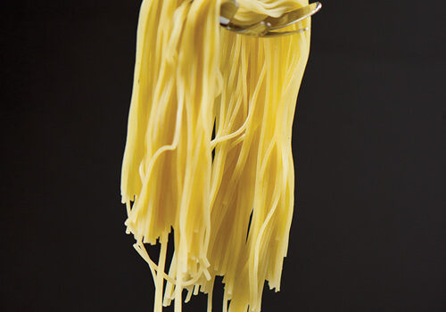 Possibly the most recognizable and common pasta in the United States, spaghetti noodles are long and thin. They’re typically used with tomato or meat sauces but any sauce will work with them. Spaghetti can be used in casseroles and stir fry, too.