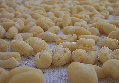 This pasta looks like little hot dog buns. Cavatelli is usually served with thick sauces or in pasta salad. It can be served with many sauces: meat, cream, vegetable or seafood. (Photo: "Cavatelli" by Luigi Scorcia - cavatelli. Licensed under CC BY 2.0 via Wikimedia Commons - https://commons.wikimedia.org/wiki/File:Cavatelli.jpg#/media/File:Cavatelli.jpg)
