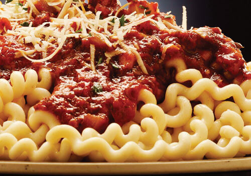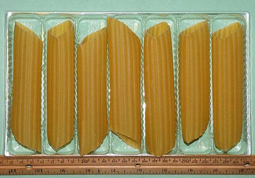 Manicotti are large pasta that are stuffed with meat, cheese and vegetables, covered in sauce and baked. (Photo: "EMS-109321-Manicotti-rule." by E. Michael Smith Chiefio - Own work. Licensed under CC BY 2.5 via Wikimedia Commons - https://commons.wikimedia.org/wiki/File:EMS-109321-Manicotti-rule..JPG#/media/File:EMS-109321-Manicotti-rule..JPG)You can check out more types of pasta here.