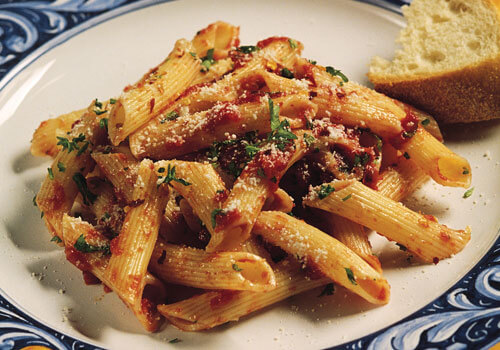 Penne pasta works well for baked dishes. Any sauce pairs well with penne, especially chunky sauces.