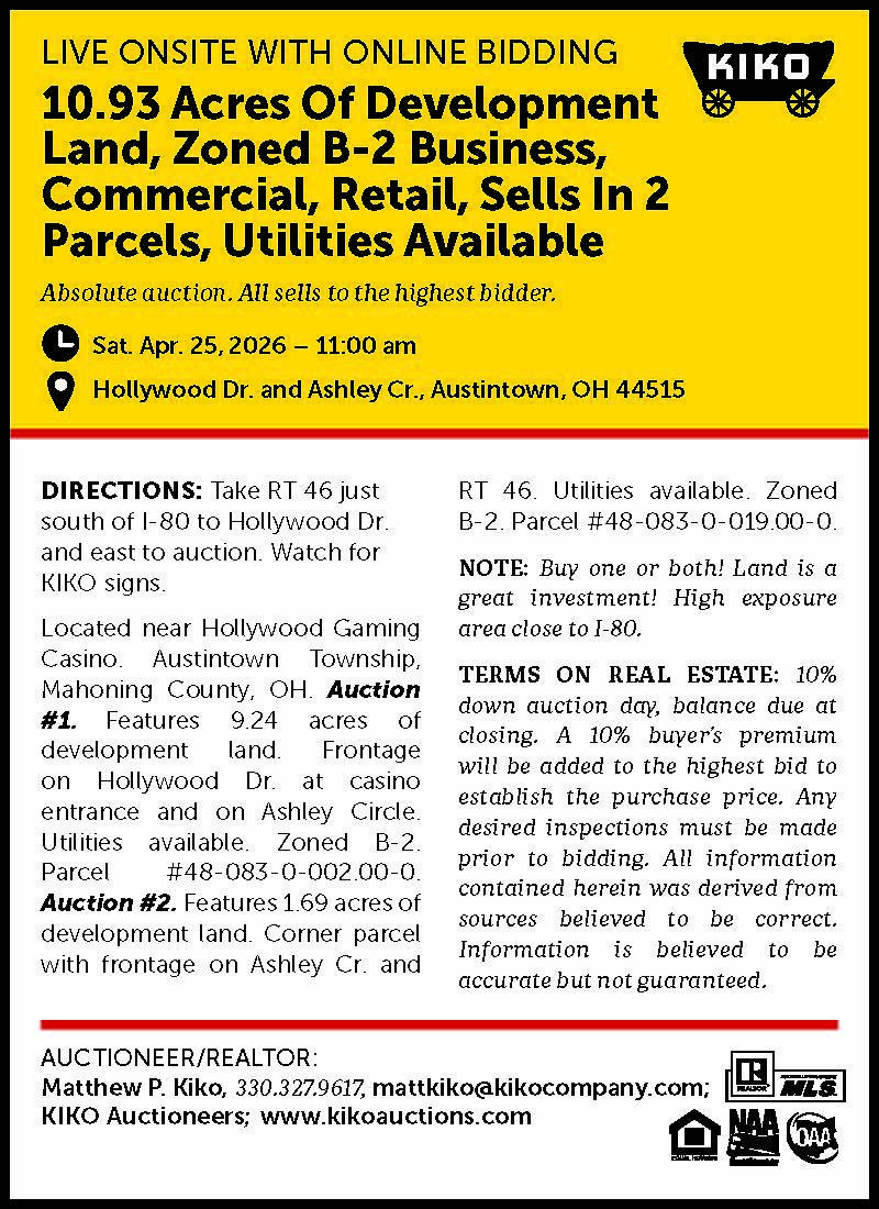 10.93 Acres of development land, commercial, sells In 2 Parcels, and misc.
