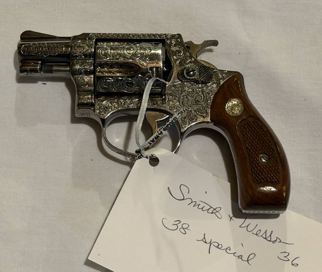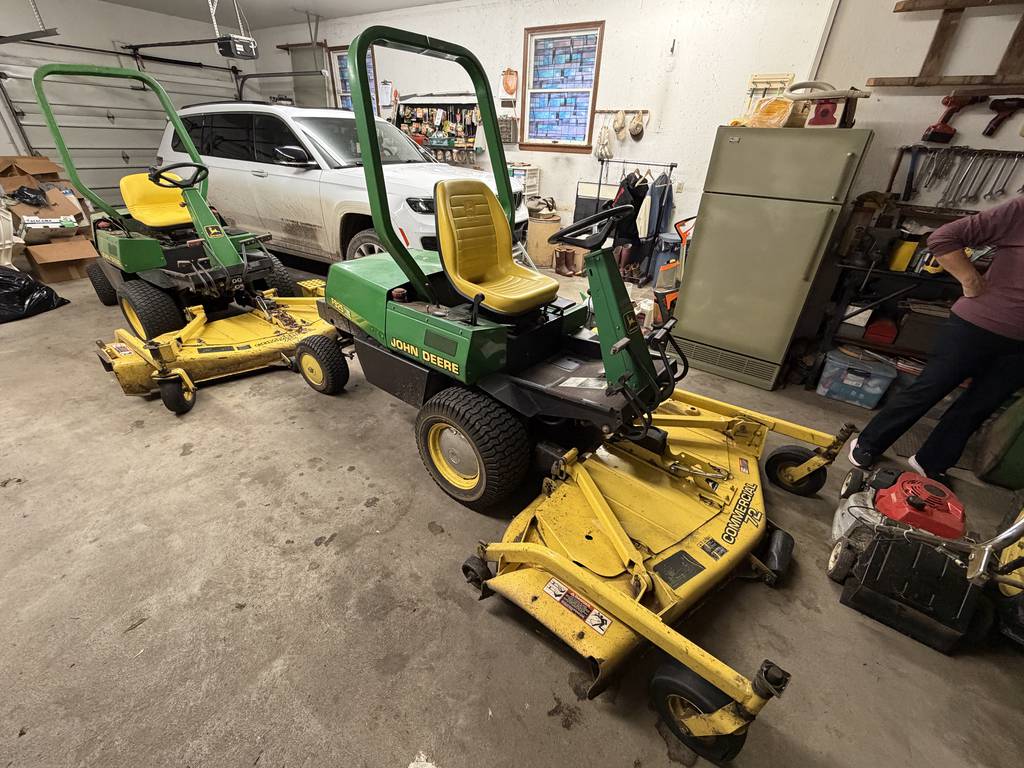 John Deere 950 tractor w/ John Deere 75 front-end loader – 4WD – 1398 hrs.; John Deere 621 Grooming Mower; John Deere F935 commercial mower w/ 72†front mower deck – diesel – 770 hrs.; John Deere F925 commercial mower w/ 72†front mower deck – diesel – 986 hrs.; Honda 6500 generator; step ladders; garden hose; misc. sockets and wrenches; steel work bench w/ grinder and vice; tool boxes; long handled tools; nut and bolt bin; air compressor; in & out boxes; FIREARMS – Remington T-bolt 22 long w/ scope; Remington 410 1100 series w/ spare barrel; Browning A-5 20 ga. Belgian w/ ventilated rib; Franchi 48 AL 20 ga.; 67 Winchester rifle – 22 short – single shot; Volunteer 16 ga. single shot; Eclipse Comp. Belgian 12 ga. side by side double barrel (not safe to shoot); Cap Lock 45 cal. rifle w/ Mason emblem; Smith and Wesson Model 36 38 special – highly engraved; Smith and Wesson Model 60 38 Special – stainless steel; Browning P35 high power; Smith & Wesson Model 34 22 long; H & R 22 special w/ holster; Smith & Wesson 67 38 special – stainless; Smith & Wesson 34-1 22 long w/ box; Smith & Wesson Model 18-3 22 long – blued w/ box; Ruger LCP 380 w/ box; Garcia Bronco single shot 22 long – bicycle rifle; powder hors; Buck knife; Case knife; gun cabinet; chest deep freeze; Maytag ringer washer; galvanized wash tubs; Samsung 48†tv; sound bar; Tiffany style plastic John Deere plastic wall lamps; wardrobe; book case; misc. seasonal decorations; wicker love seat; rocking chair; table lamps; soft gun cases; misc. household furniture; pet cage; Snap-On beer stains; travel golf club case; men’s and woman’s golf clubs; washer; dryer; approx. 15-20 pieces of Cambridge glass; miniature hens on the nest; misc. glassware, knickknacks, etc; curio cabinet; misc. pots and pans; glider rocker; leather chair; couch; end tables; lamps; Mary Beam Cambridge tiles; Cool Blue Pabst coin can; Tinker Toy set; dining table and chairs; steel folding chairs; library table; antique stand; coin operated wall phone; upright jewelry box; 4 pc. Bedroom suit; cedar chest; 65†tv; piggy bank; chest of drawers; dresser w/ mirror; and more.