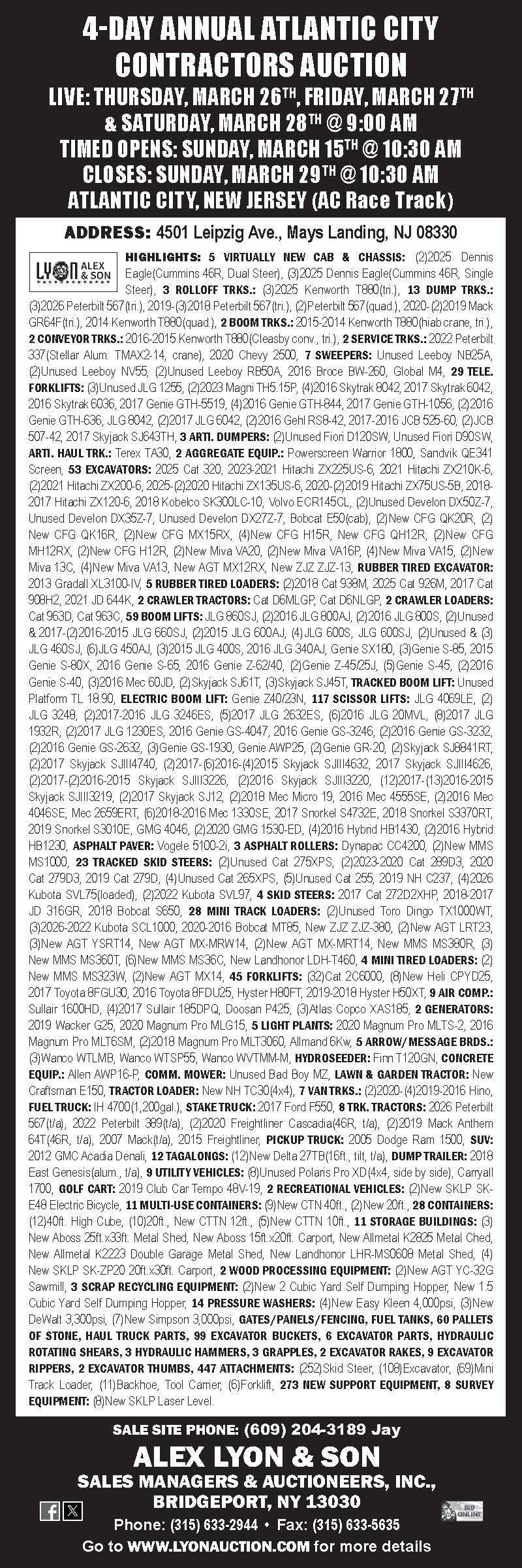 4 Day contractors auction. See www.lyonauction.com for more details.