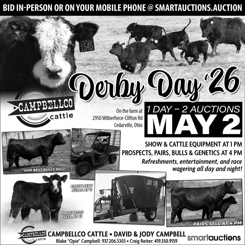 Derby Day 26. Show cattle equipment, prospect pairs, bulls, and misc.