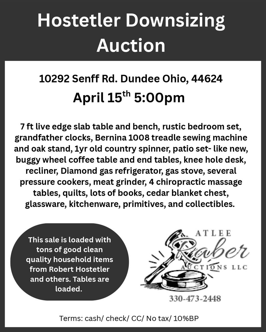 Live edge table and bench, bedroom set, grandfather clocks, and misc.