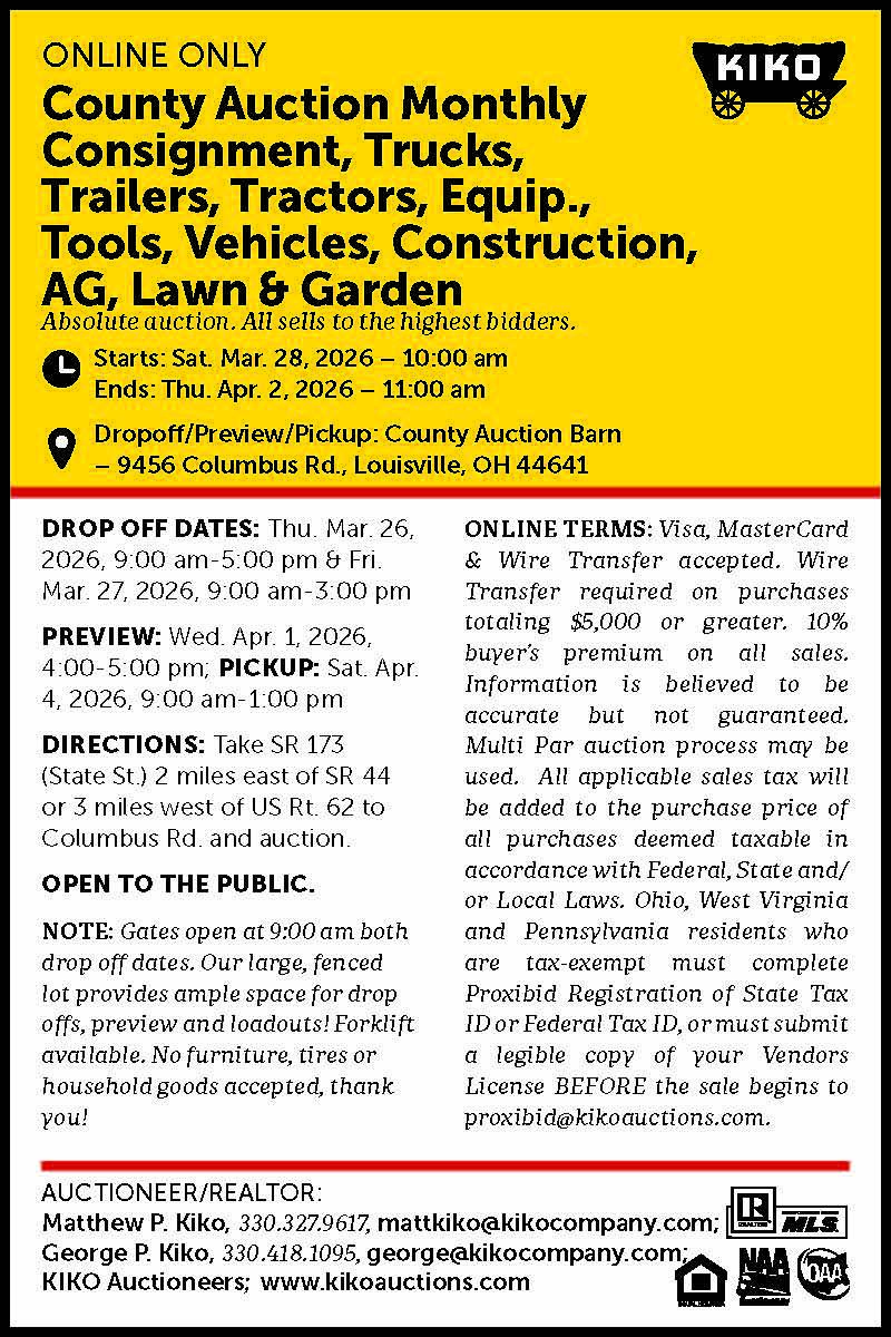 Home Agriculture / Farm Monthly Consignments, trucks, trailers, equipment, tools, vehicles, lawn & garden, and misc.