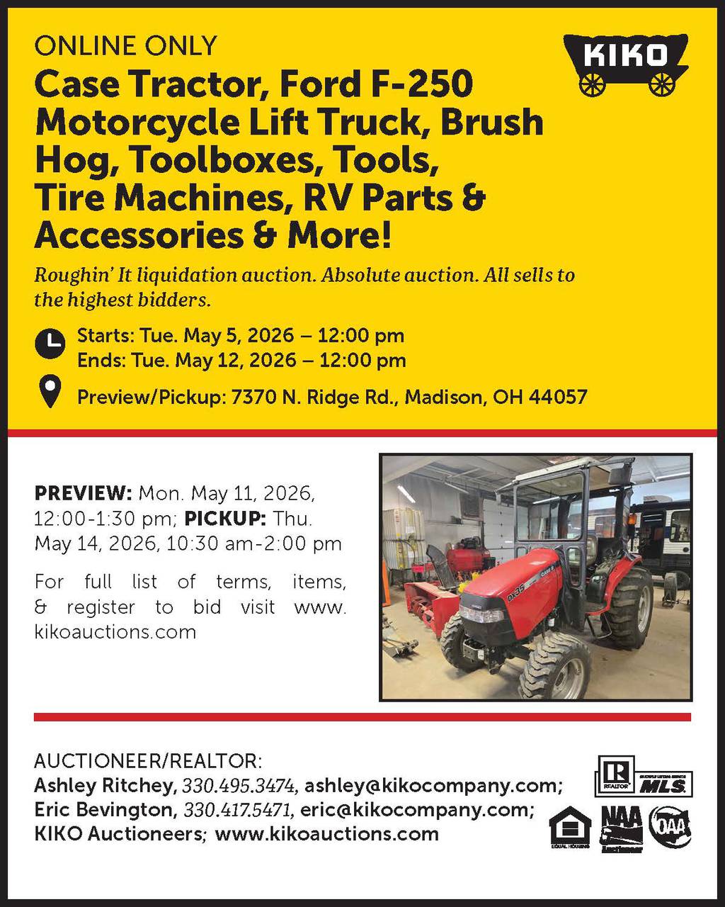 Home Machinery & Equipment ONLINE ONLY. Case tractor, Ford F-250