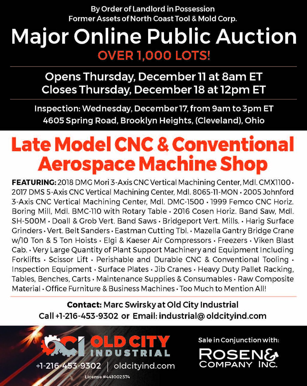 Call +1-216-453-9302 or Email: industrial@ oldcityind.com
