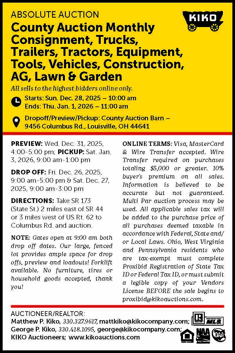 Hundreds of Auction Advertisements for Ohio, Pennsylvania and West Virginia.