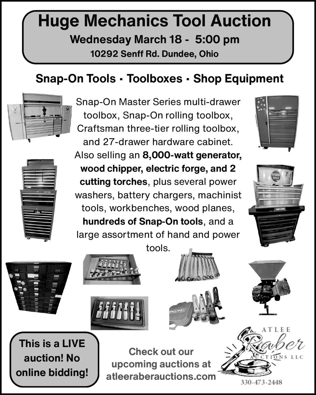 Snap-on tools, toolboxes, shop equipment, and misc.