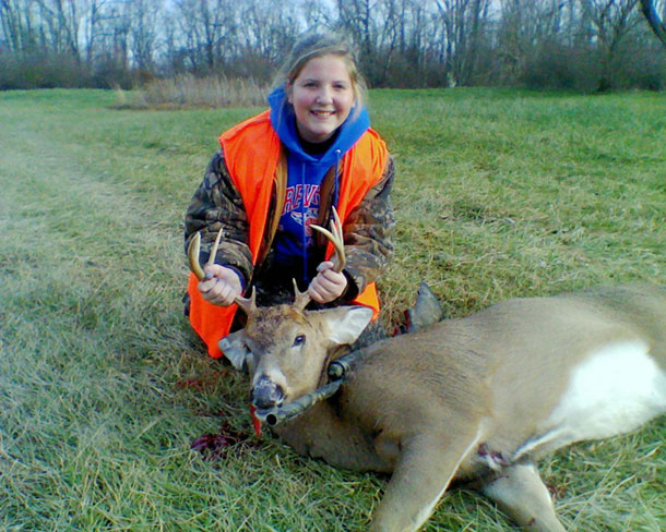 Emily Parish, 12, shot this 9-point buck in Harrison County while on her first hunt. She was hunting with her dad during the youth gun hunt.