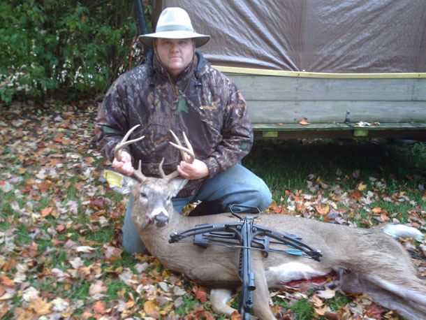 Adams, of Fredonia, Pa., with his 8 point he shot with a crossbow on Oct. 25, 2011. It weighed 185 pounds.