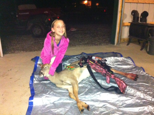 9-year-old Lydia CacKovic got her first deer, a button buck, with a crossbow on family property in Mahoning County.