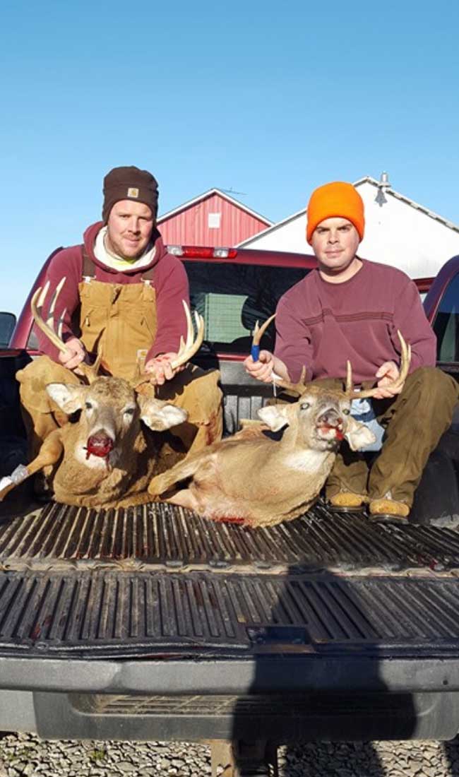 Farm and Dairy reporter Chris Kick (right) and his brother, Todd, got a couple of bucks during the first hour of gun season Nov. 30. Todd shot a 10-pointer and Chris shot an eight-pointer.