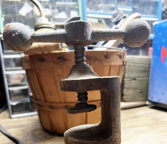 Marshall Clark, of Scio, Ohio, submitted the item. He said the top is a swivel. The slotted item on the bottom turns.