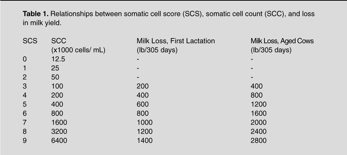 Relative to stage of lactation, cows are most susceptible to intramammary infections at dry off and at calving. First lactation animals should have less incidence of mastitis than older cows. Thus, with all of these aspects in mind, monitoring the mammary health of the herd is very important. At least monthly analysis of the somatic cells in milk for each cow should occur, all treatments for mastitis should be recorded, work with your veterinarian to determine if milk cultures should be done when having persistent mastitis issues, and cow-side tests, such as the California Mastitis Test (CMT), can be useful. The major focus should be to prevent intramammary infections from occurring, but quick identification of infection and proper treatment can reduce the severity and duration of the infection. What you can do. Some guidelines for using management records for improving the mammary health of the herd are: The goal for the herd should be less than 200,000 cells/mL of milk, with under 150,000 cells/mL being a more preferred goal. Use the overall average from management records and the bulk tank records from the milk processor to routinely assess your herd’s mammary health. As was mentioned earlier, loss of milk production is the major cost to mammary infection. Milk loss caused by an infection in older cows is greater than for first-lactation cows, a loss of about 400 and 200 pounds/lactation, respectively, for each increase in linear somatic cell score (SCS) above 2 [or doubling of somatic cell count (SCC)] (Table 1). For example, an aged cow with an average SCS of 5 would produce about 1,200 pounds less milk, equating to $216 with milk at $18/hundredweight. This loss in milk revenue does not include the loss in quality premiums. Compare the herd’s SCC just prior to dry off to the herd’s SCC after calving. Is the dry cow treatment effective? Are cows getting infected during the dry period? Are infections in the previous lactation being cured during the dry period? Monitor the herd’s infection status by stage of lactation. Are infections more prevalent at certain days in milk, and if so, can this be associated with a change in housing or some management practice? Use reports that provide the amount of somatic cells contributed in the bulk tank by infected cows, especially important for identifying those persistency infected. The milk from these cows may need to be left out of the bulk tank, or these cows may need to be culled. These cows may be causing the loss of quality premiums paid by the milk processor. We generally categorize levels of SCC at 0 to 283,000 cells/mL as low, 284,000 to 1,130,000 as medium, and more than 1.13 million as high. The goal should be to have about 85 percent of the herd in the low category and less than 5 percent in the high category. Even with the best preventive measures, clinical mastitis still occurs on dairy farms. A goal is for less than three new infections per month for a 100-cow herd (3 percent). Also, less than 5 percent of the herd should be culled due to mastitis. Using production records to monitor mammary health of the herd is very important for the health of the herd, shipping high quality milk, and for profitability of the dairy enterprise. (The author is a professor and Extension dairy specialist at Ohio State University.)