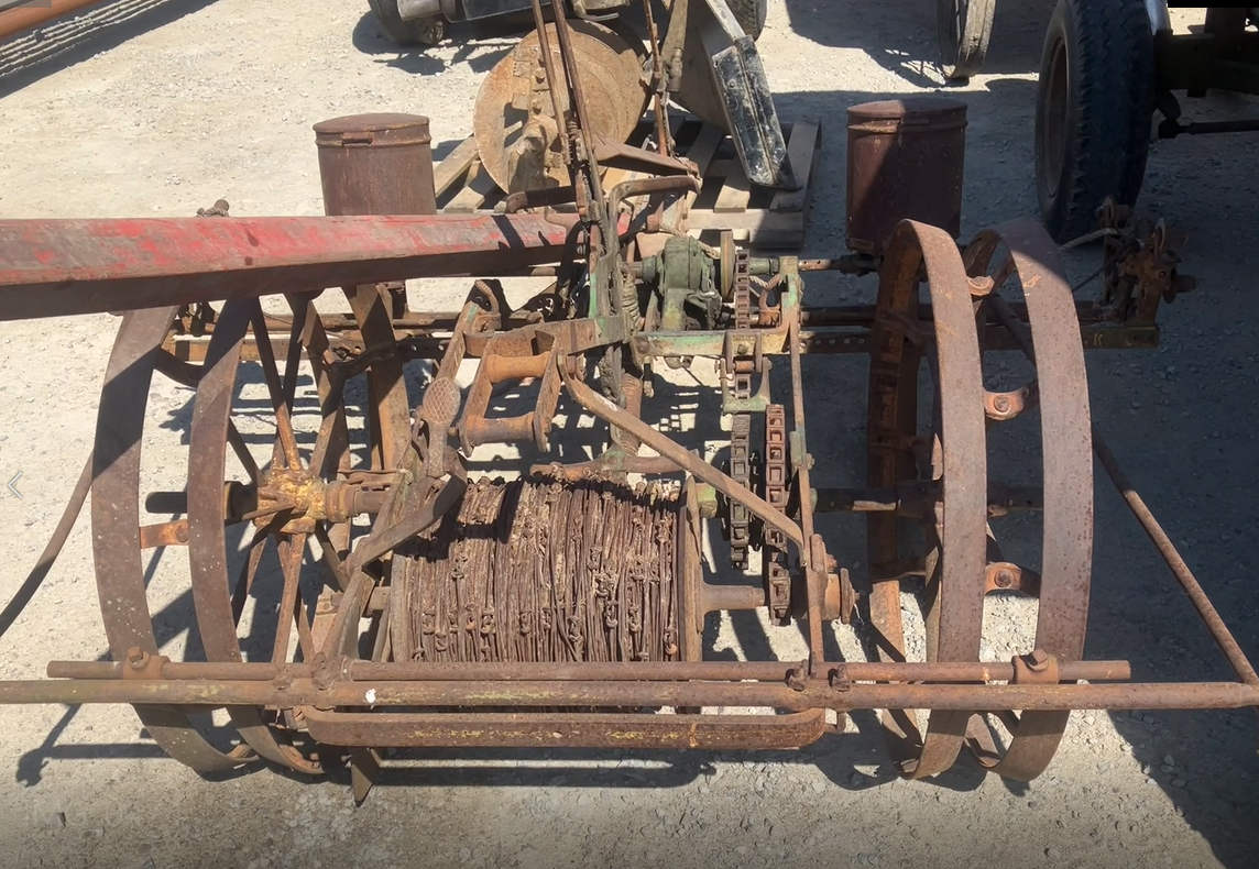 Item No. 1278 brings to question use more than simply identifying a tool. Calvin Breyley, of Streetsboro, Ohio, came across a corn planter at an auction with a spool of wire hanging from the back. It was the only one at the auction that had the attachment. The planter is a two-row John Deere horse drawn planter.