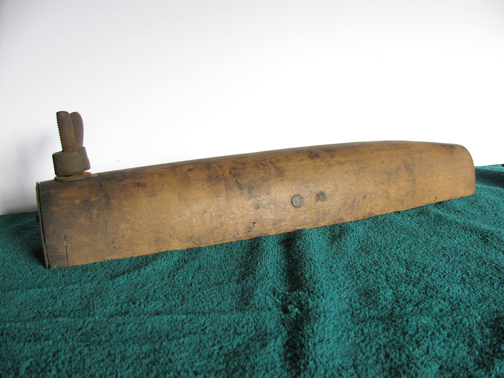 Item No. 1269 is the fourth item in a series shared with us by Western Columbiana County Historical Society. It’s 18 inches long and wooden with a metal strap on the left end and a center piece on the bottom that hinges out a little.
