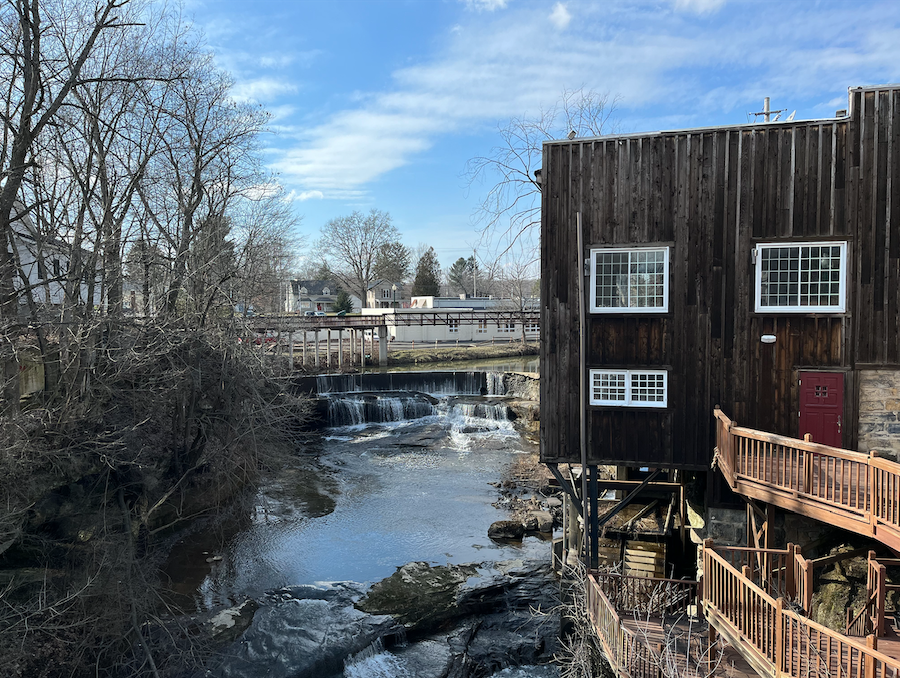 Back up at street level, we crossed the bridge and took the wooden pedestrian path across the creek. We had essentially made a loop around the main businesses in the historic district. I had a goal in mind — I wanted to go inside the coffee shop.
