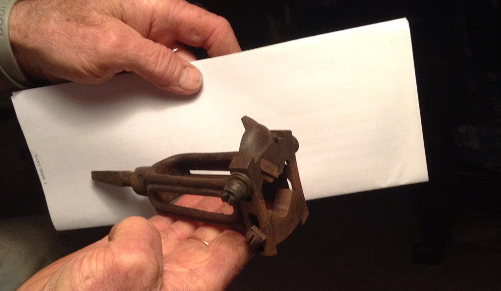 George Wimer, of Tidioute, Pennsylvania, is quite sure that Item No. 1058 is a pastry cutter used to cut strips when making a lattice pie crust. He says this is the first one he has seen in 60 years.