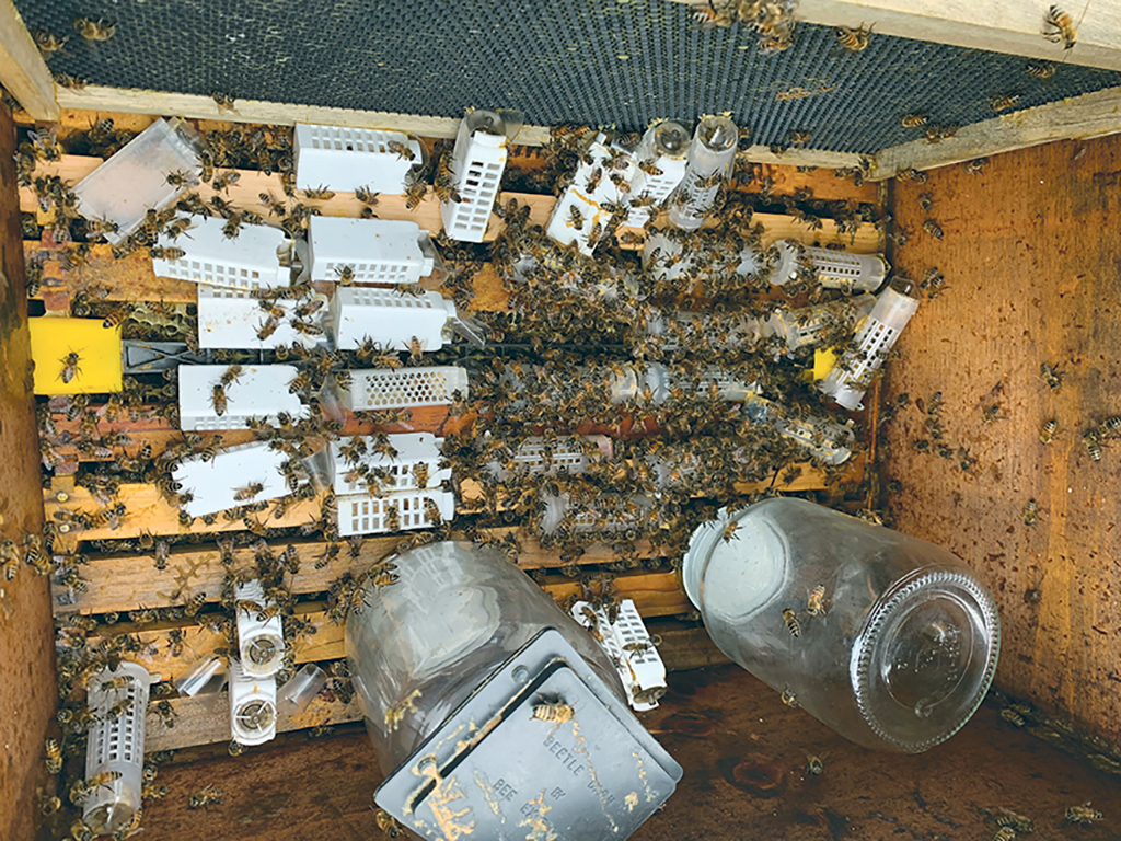 There are many variations of cages, as there are beekeepers’ opinions on how long to cage the queen before it is released. There are also many factors that will influence the higher rate of acceptance to the new virgin queen. How long has the hive been queenless? Is there any open brood still available in the hive? Are there any other queen cells, obvious or hidden, in the hive? Does the hive have laying workers? Does the hive have a strong population of young bees? You will get as many opinions on this subject as you can find on YouTube videos.