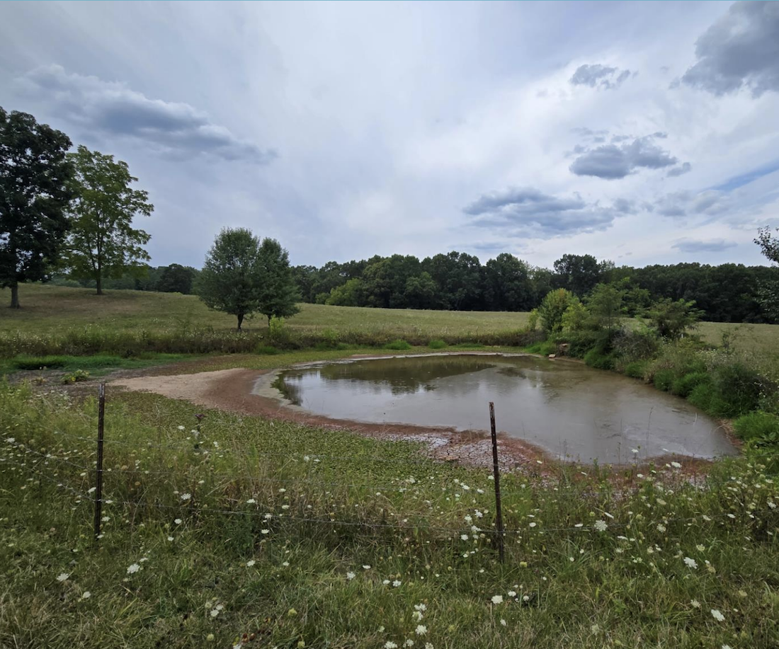 A farm pond in Morgan County in mid-August 2024 is drying around the edges during a historic drought. (Submitted photo)