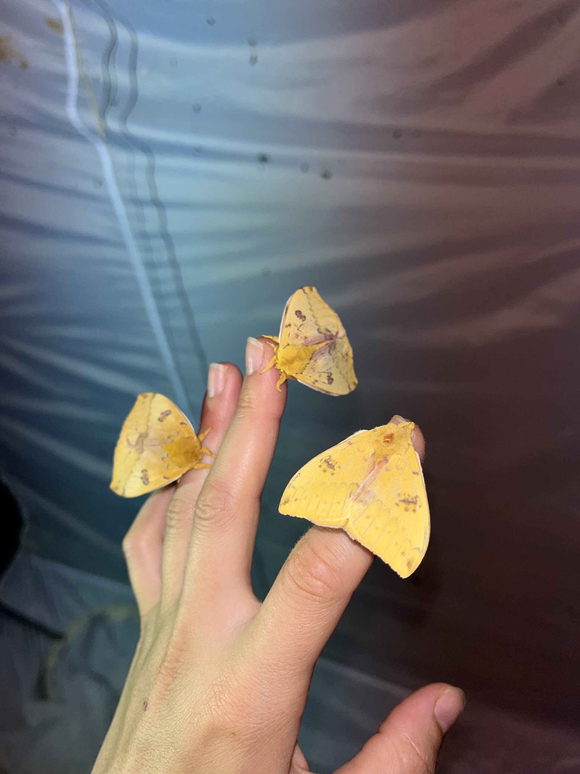 While night collecting, I soon realized the diversity and changes that unfold as night progresses. As each hour passed, starting around 8 p.m., different species would emerge. Through careful observation, I began to recognize the pattern of when specific moth species appeared. Some summer nights, I stayed up until 2 a.m., hoping to catch a glimpse of the stunning, green Luna moth, the impressive 5-7-inch wing span of the Cecropia moth or the gentle touch of the Io moth.