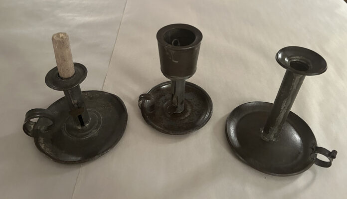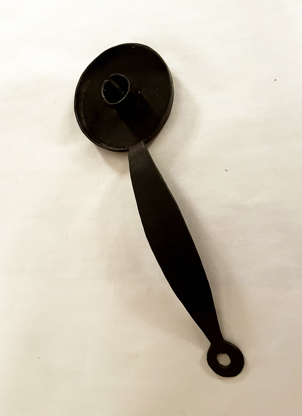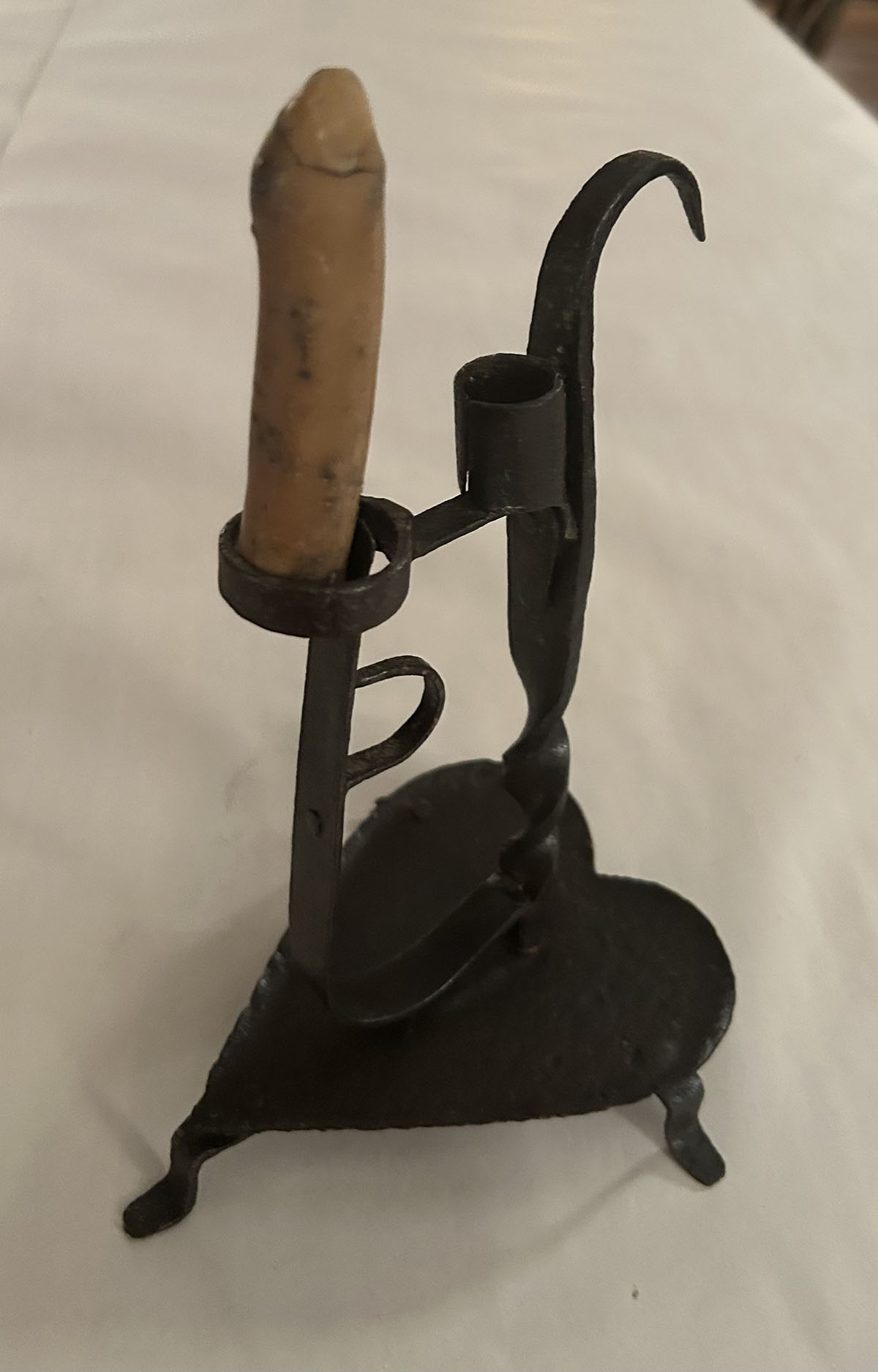 Of all the pioneer craftsmen who could make candleholders, it seems the tinsmith was the most prolific in the genre and attempted to garner the market to the greatest extent possible. The tinsmith seemed to possess a wealth of creative ideas in terms of how tin could be formed to secure candles.