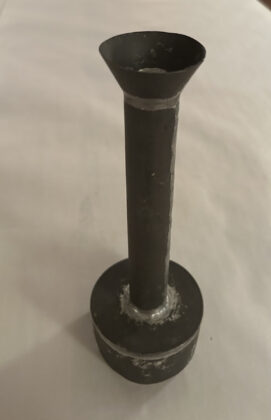Some of these candleholders had conversion units that enabled a tin font to be inserted into the tube so that it could burn animal fat if candles were not available. Such candleholders were cheaply made and apparently marketed widely, likely by peddlers who seasonally plied the developing communities of the territory.