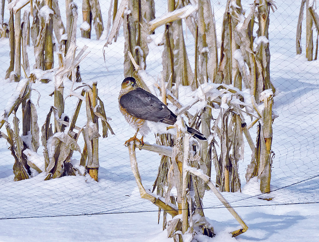 Just last week I was ooohing and ahhhing over the large number of dark-eyed juncos feeding beneath our feeders. “Nearly 50 of them!” I announced to my husband. Suddenly, the flock took flight simultaneously, some of them hitting the window. A grey blur entered the scene and plopped down onto the snow. In its talons, the Cooper’s hawk held one of the juncos, struggling in its grip. After a minute or two, the hawk launched itself upward, junco dangling beneath, coming to land on a nearby fencepost where it devoured its breakfast.