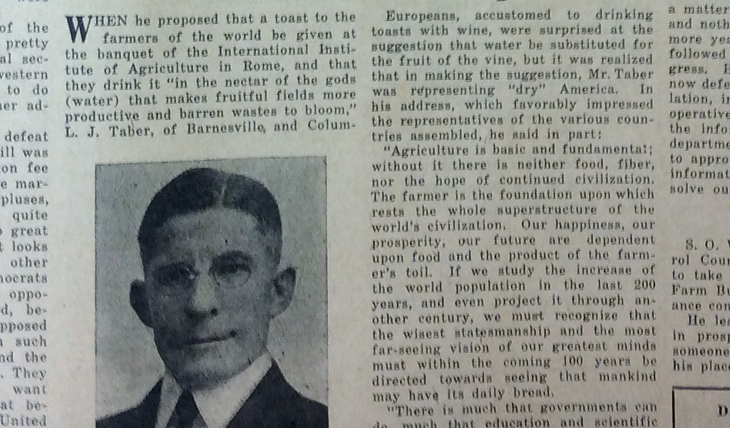 In 1926, as National Grange master, he traveled to Rome as a U.S. delegate to the International Institute of Agriculture, and was selected to represent the English-speaking delegates at a banquet. Farm and Dairy reprinted part of his remarks — and they are worth repeating 90 years later.