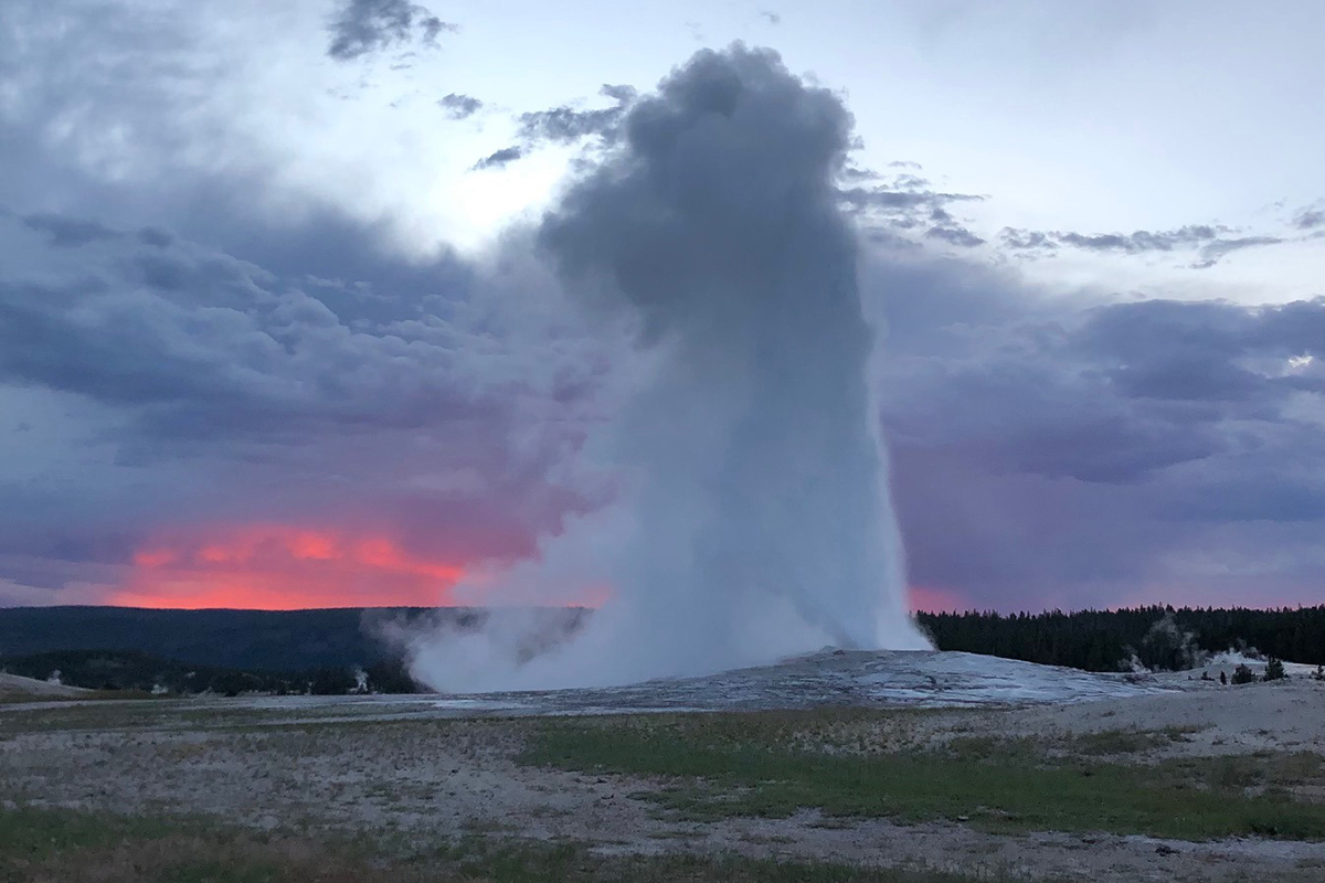 The real show began as the sunset in the sky turned first to red and then dark purple with occasional lightning in the distance. Old Faithful did not disappoint.