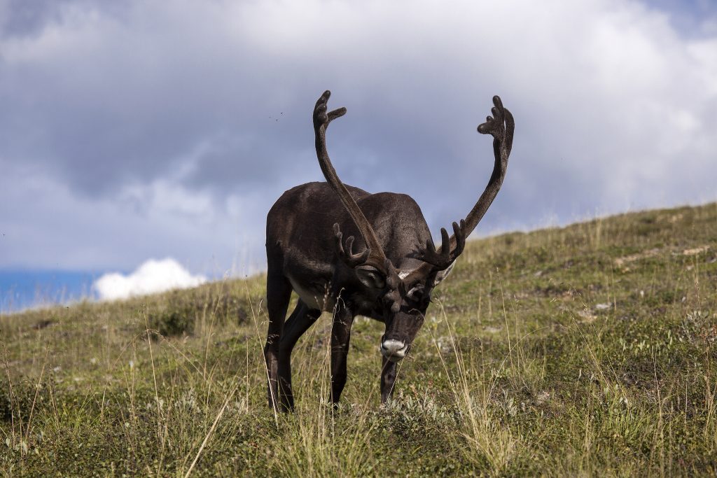 Unlike other members of the deer family, both sexes of caribou grow antlers. Racks tend to be much larger than those of white-tailed deer.