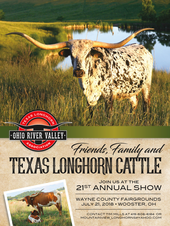 Texas Longhorns come to Wooster! Longhorn breeders from around the country come to show off their animals at the annual Ohio River Valley Texas Longhorn Show. You are invited you to attend our show and see what makes longhorns such a unique breed. A free event great for the whole family.