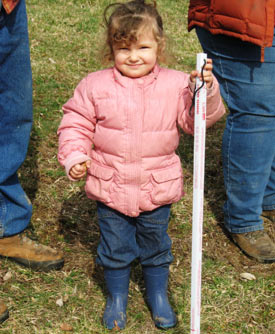 Kyleigh, a future grazier, is only a little taller than the grazing stick distributed at a recent eastern Ohio grazing school. The stick is used to measure available forage, but Kyleigh may find other uses for it.