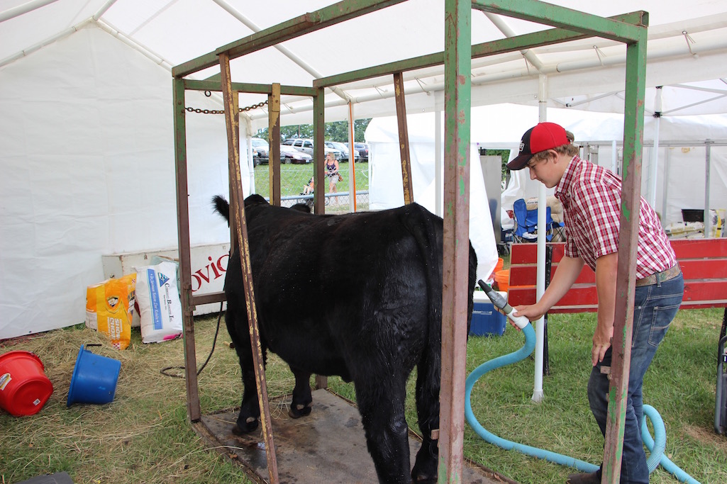 Joey Pavlovicz is busy prepping his market steer for the upcoming sale at the Medina County Fair, Aug. 6. This is Pavlovicz third year taking a steer to the Medina County fair and he placed first in his market class and fifth in the born and bred class this year.