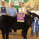 Madalyn Black’s 560-pound grand champion dairy beef feeder sold for $750 a pound to Rogers Mill, represented by Cindy, Kait and Bob Black. Also pictured are Outstanding Youth James Moore and Brittany Siembieda.