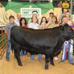 Sam Kanagy’s 1,355-pound grand champion steer sold for $12.50 a pound to Mac Trailer, represented by the Conny and Raber families.
