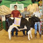 Jenna Witmer’s 498-pound reserve champion dairy beef feeder sold for $6.50 a pound to Cows Come First, represented by Jacob Oliver and Cody Kurtz.