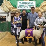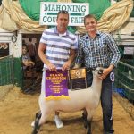 Wyatt Baird won grand champion market lamb and senior showmanship. His 127-pound lamb was purchased for $13/pound by Sarchione Chevrolet, Randolph, Ohio, represented by Ryan Oprandi.