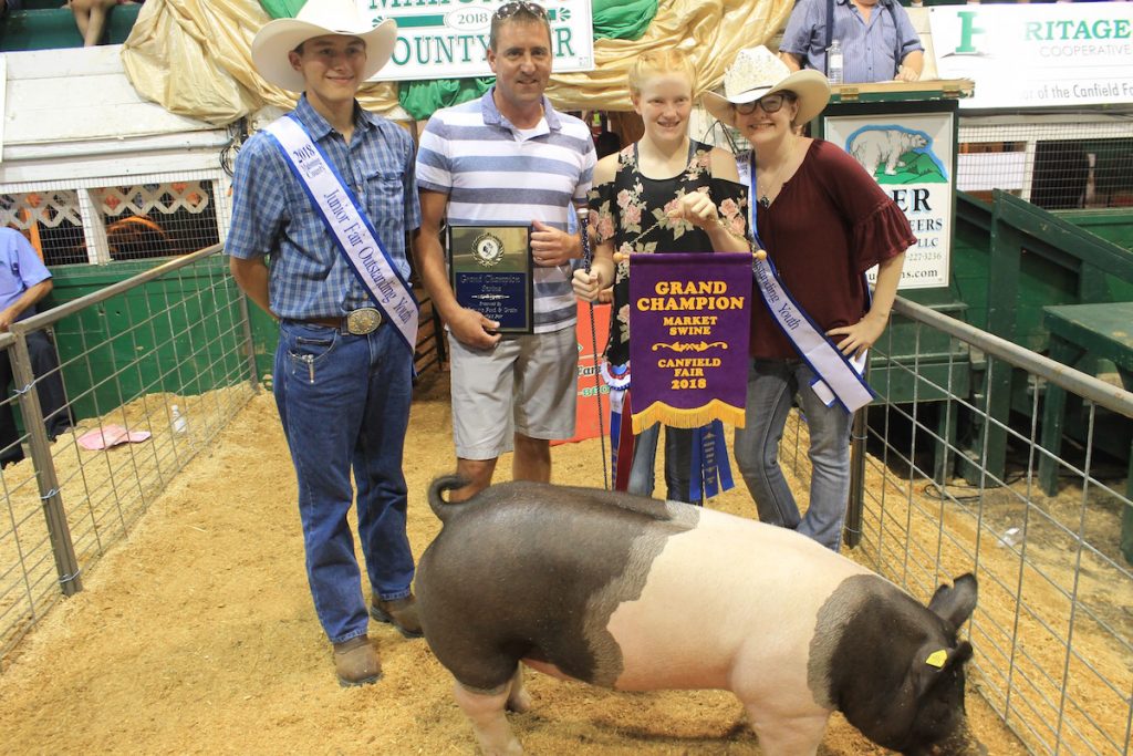 The 2018 Canfield Fair junior fair market livestock sales were held Aug. 30 and 31, and the cheese basket sale was held Sept. 2. Here’s a recap of the grand champion exhibitors and their final sale bids/buyers. Scroll down for a slide show of the winners, or click on the individual exhibitor’s name to see a photo.