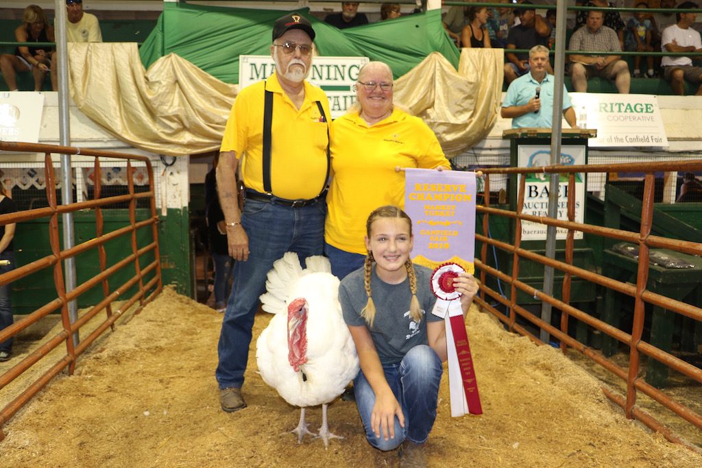 Jackson Young’s 34-pound grand champion turkey sold for $800 to Dean’s Funeral Home, represented by Scott, Tonya and Zach Dean.