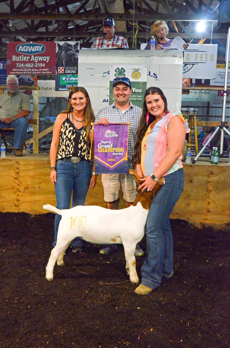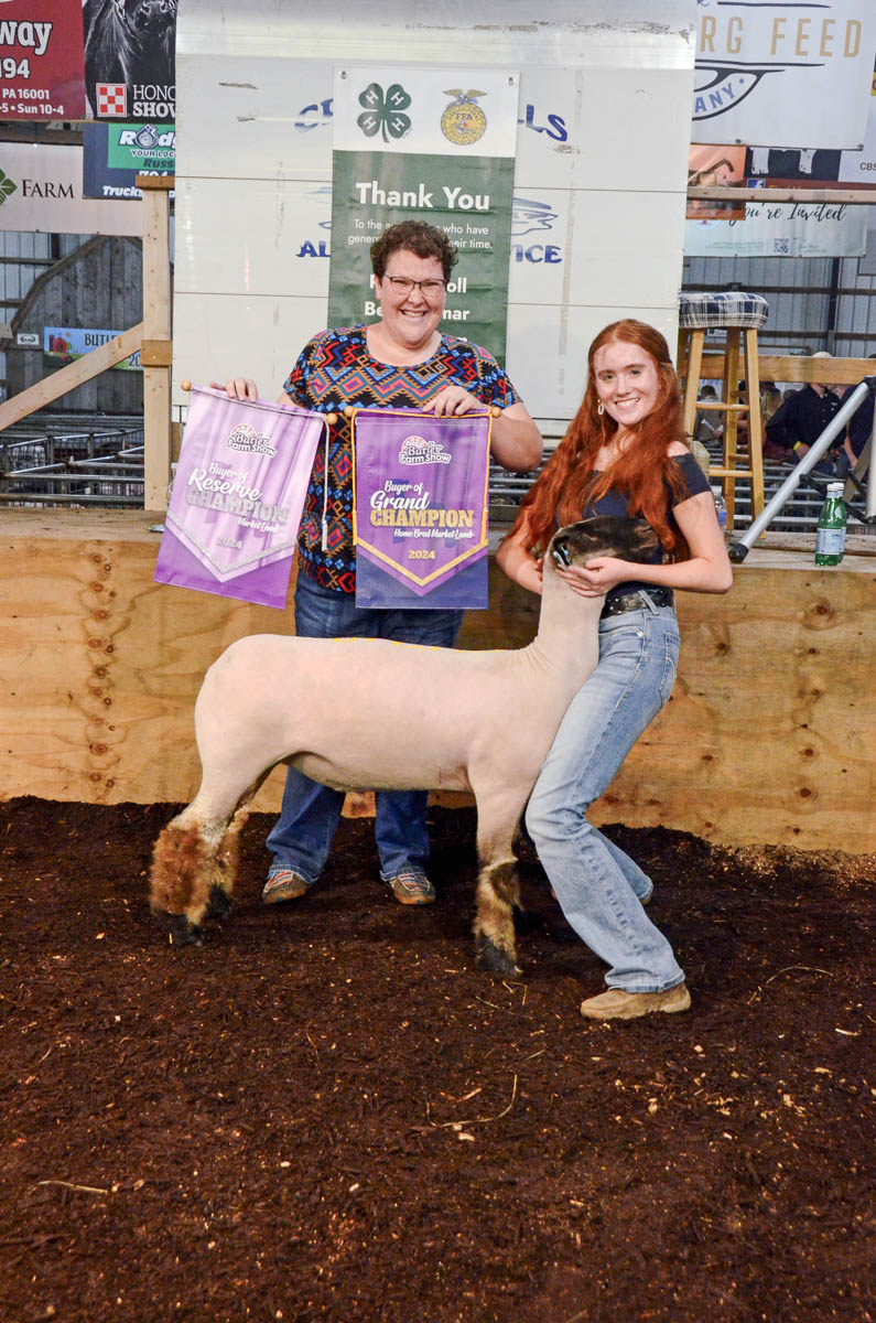GRAND CHAMPION: Adalynn Guiher | Bid: $17/lb | Weight: 138 lbs | Buyer: Butler Agway; RESERVE CHAMPION: Melissa Drake | Bid: $50/lb | Weight: 140 lbs | Buyer: Amerikohl Mining, Inc.