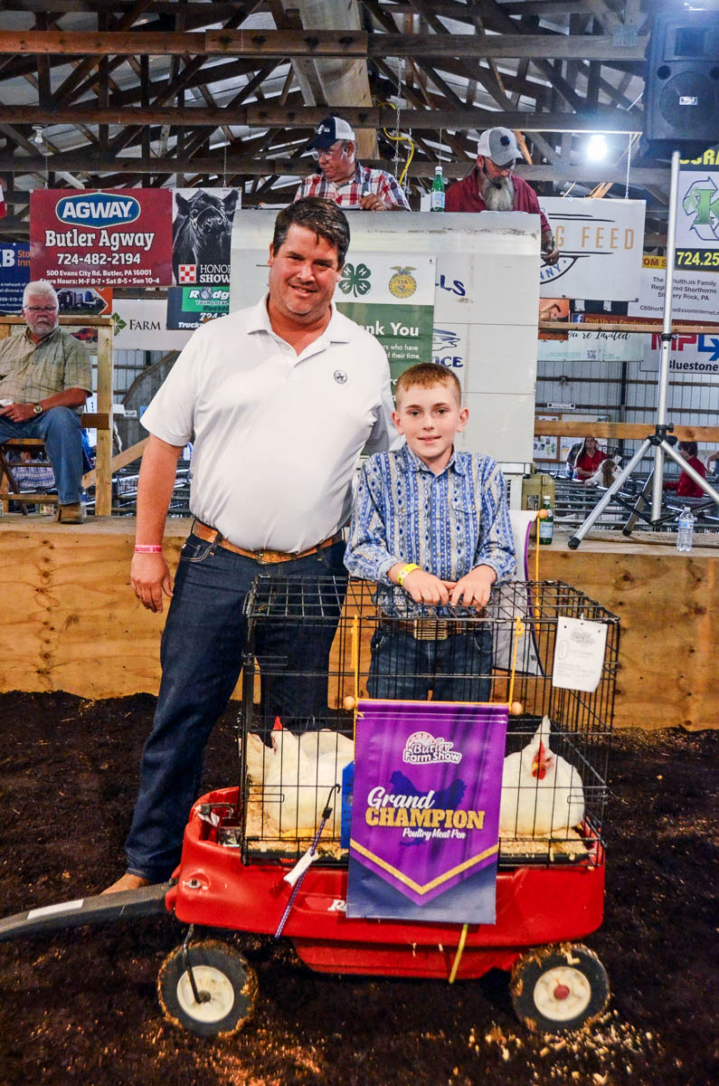 GRAND CHAMPION: Maggie Schwalm | Bid: $20/lb | Weight: 101 lbs | Buyer: Butler Agway; RESERVE CHAMPION: William Schwalm | Bid: $17/lb | Weight: 101 lbs | Buyer: Fairground Market – Tom Taylor
