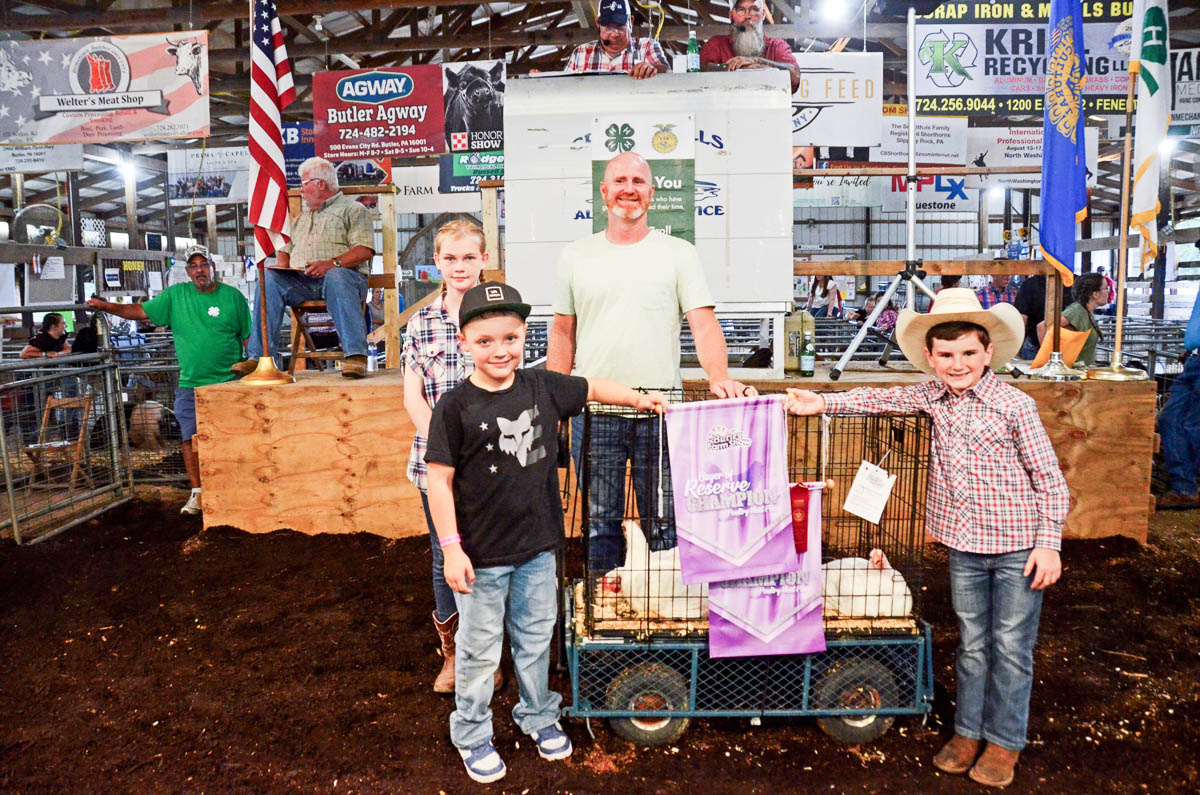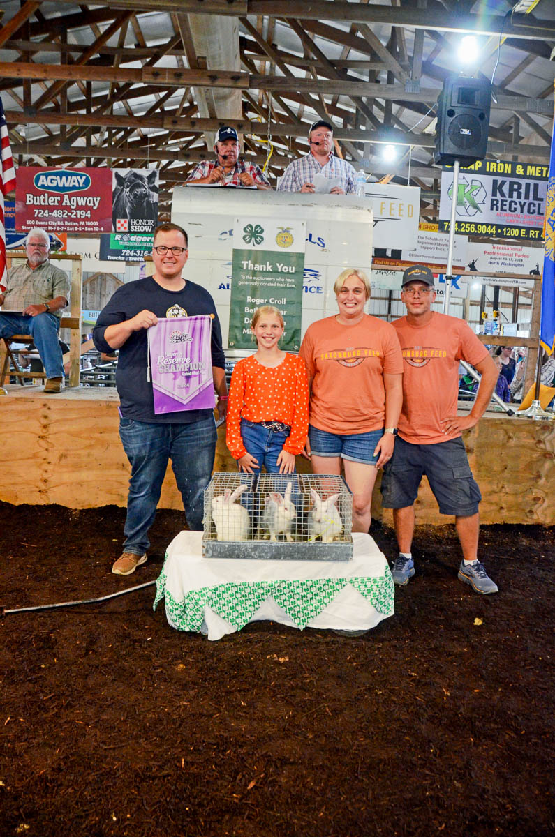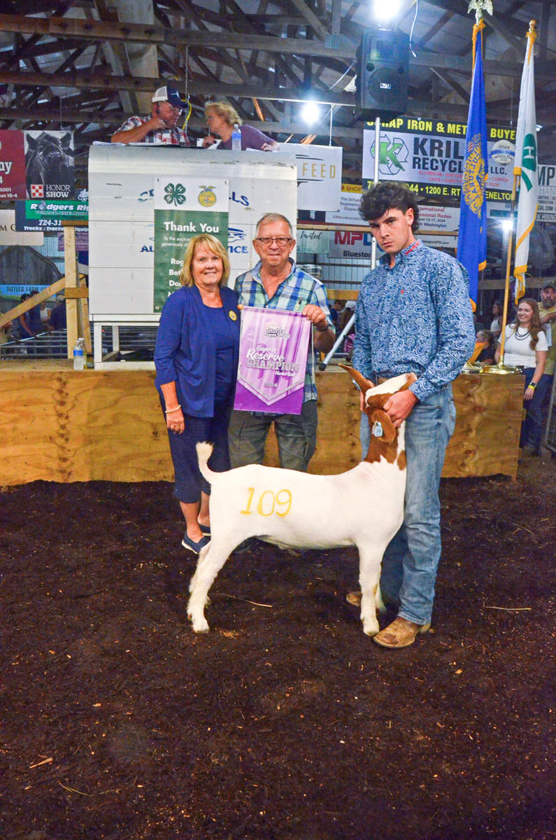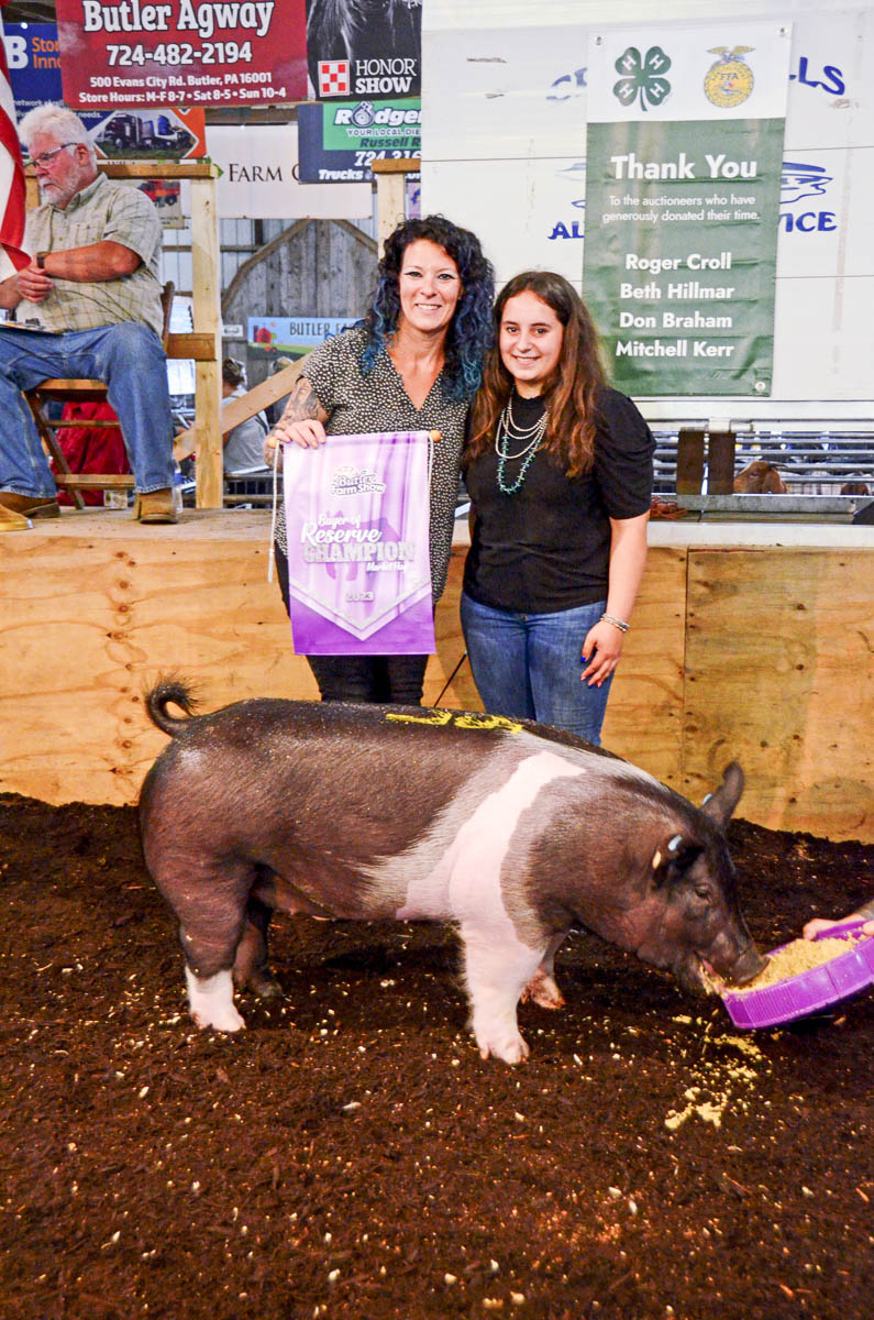 GRAND CHAMPION: Cheyenne Henry | Bid: $3,500 | Buyer: Hampton Mechanical, Inc.; RESERVE CHAMPION: Emersyn Kelley | Bid: $1,600 | Buyer: Saxonburg Feed Company & Sprankel’s Market
